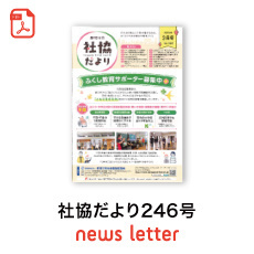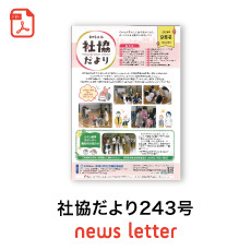 那珂川市社会福祉協議会(ボランティア・子育て支援・高齢者支援・障害者支援・介護支援・地域支援など)トップページ > 社協だよりバックナンバー 那珂川市社協トップページ 最新情報 社協について 社協とは 那珂川市社会福祉協議会とは 組織財源定款・予算・決算 社協会員・一般寄付 社協会員制度について一般寄付について 赤い羽根共同募金 赤い羽根共同募金とはとりくみ何に使われているか 那珂川市社協へのアクセス 様式ダウンロード 福祉サービス 高齢者に関することしょうがいに関することこどもに関すること困ったときの相談福祉バス・車椅子貸出しに関すること参加したい!活動したい!学びたい! 事業 事業計画・報告法人運営事業地域福祉活動推進事業受託事業調査・研究・広報・啓発事業介護保険事業障害福祉サービス相談事業福祉センター管理運営事業福祉避難所事業地域福祉権利擁護事業 社協だよりバックナンバー 福祉センター(施設案内) フロア 1Fフロア 2Fフロア 3F 福祉センター(お知らせ) 最新情報福祉センターカレンダー福祉センター事業 問い合わせ先一覧 那珂川市社会福祉協議会指定居宅介護支援事業所指定訪問介護事業所指定通所介護事業所第1地域包括支援センターボランティア支援センターくるりんボ リンク集 プライバシーポリシー